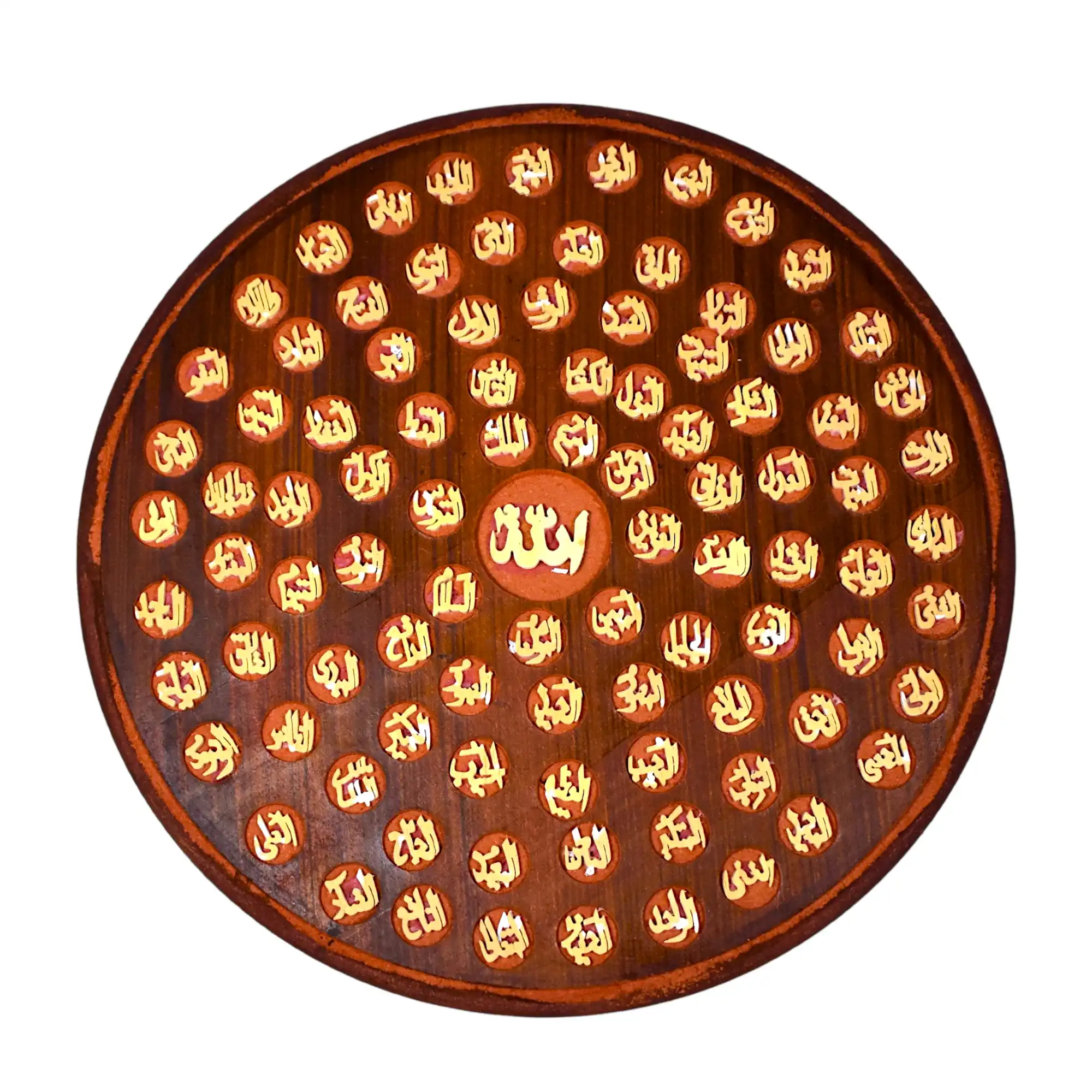 Asma-ul-Husna Round Wooden Wall Hanging – 99 Names of Allah