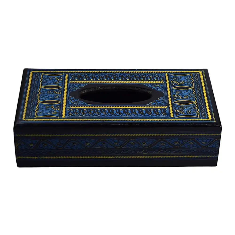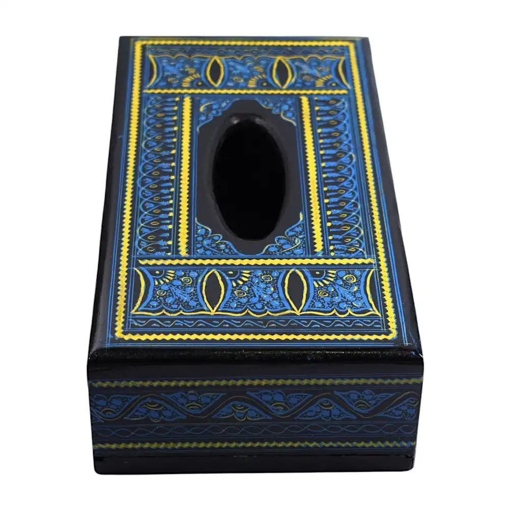 Black Naqshi Tissue Box – Blue-Gold Pattern