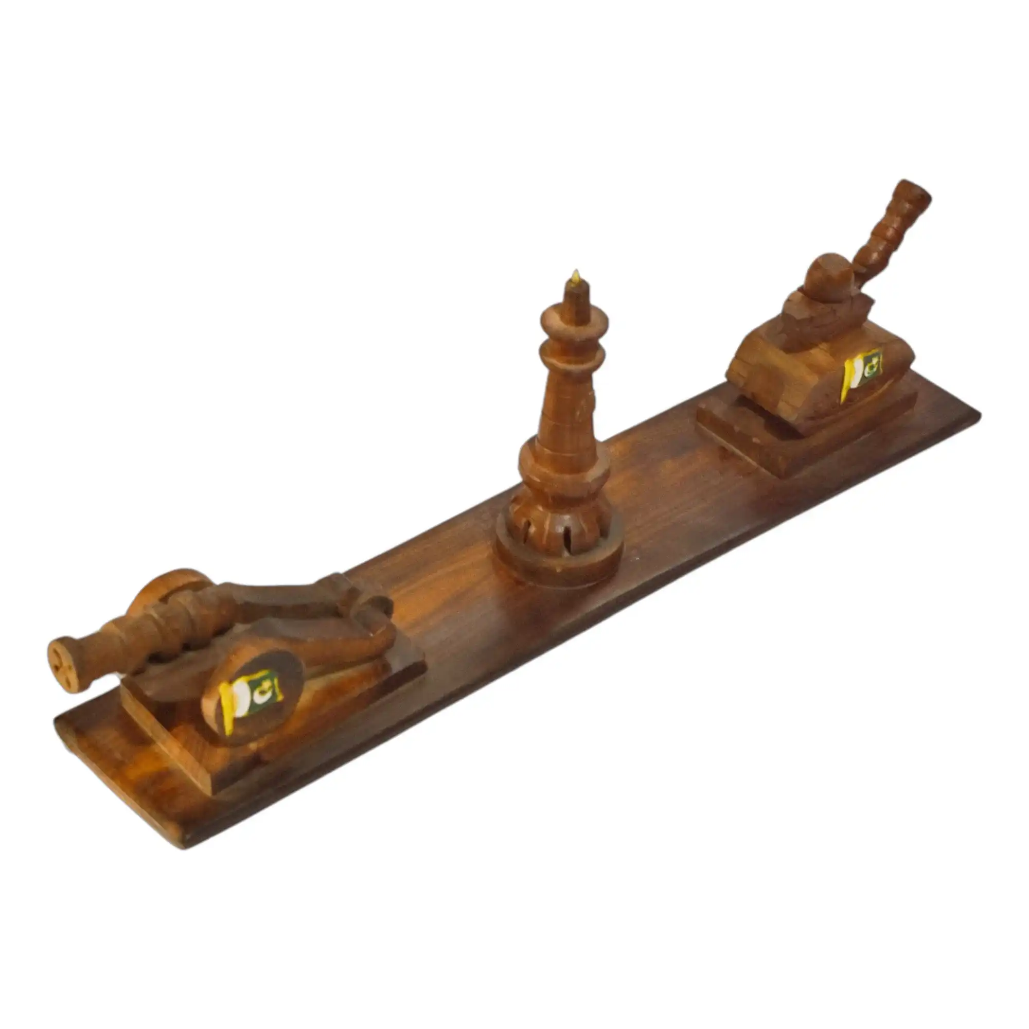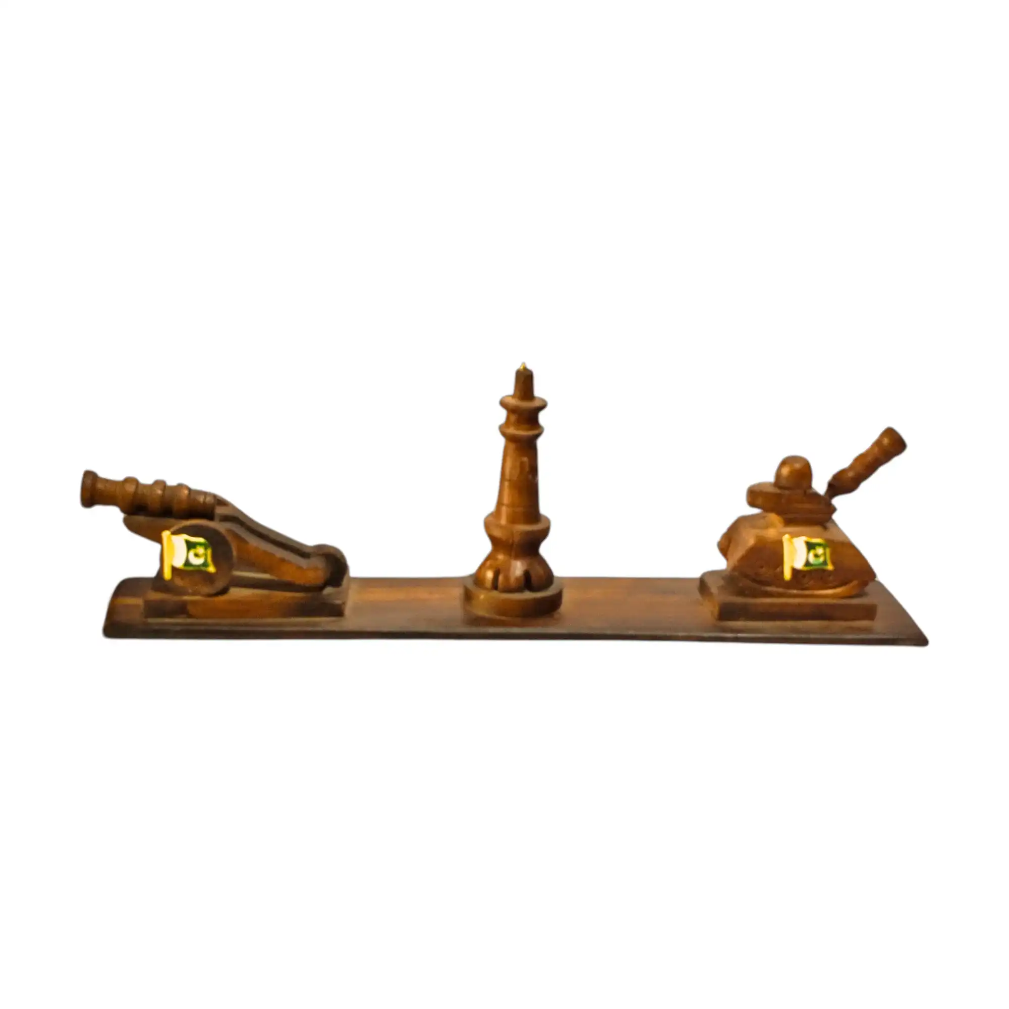 - Handcrafted wooden miniature of Minar-e-Pakistan, Cannon, and Tank
