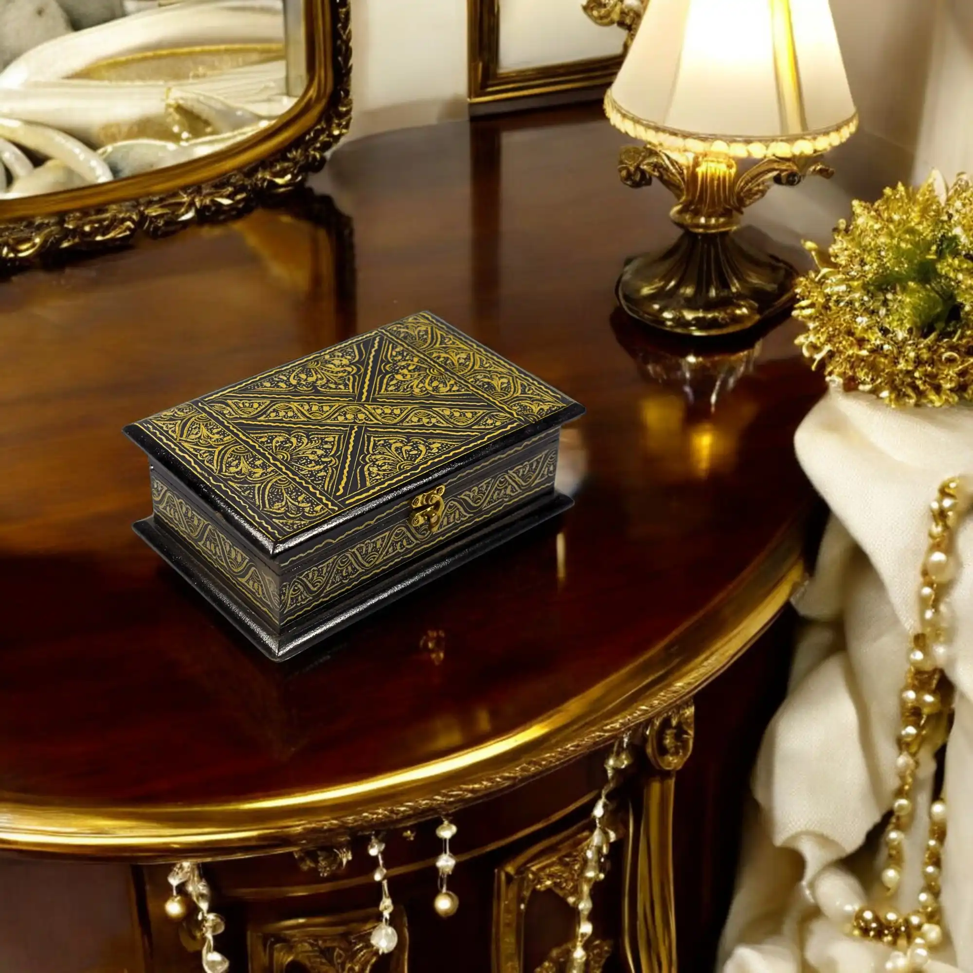 Golden Garden Naqshi Jewelry Box – Classic Flat Design