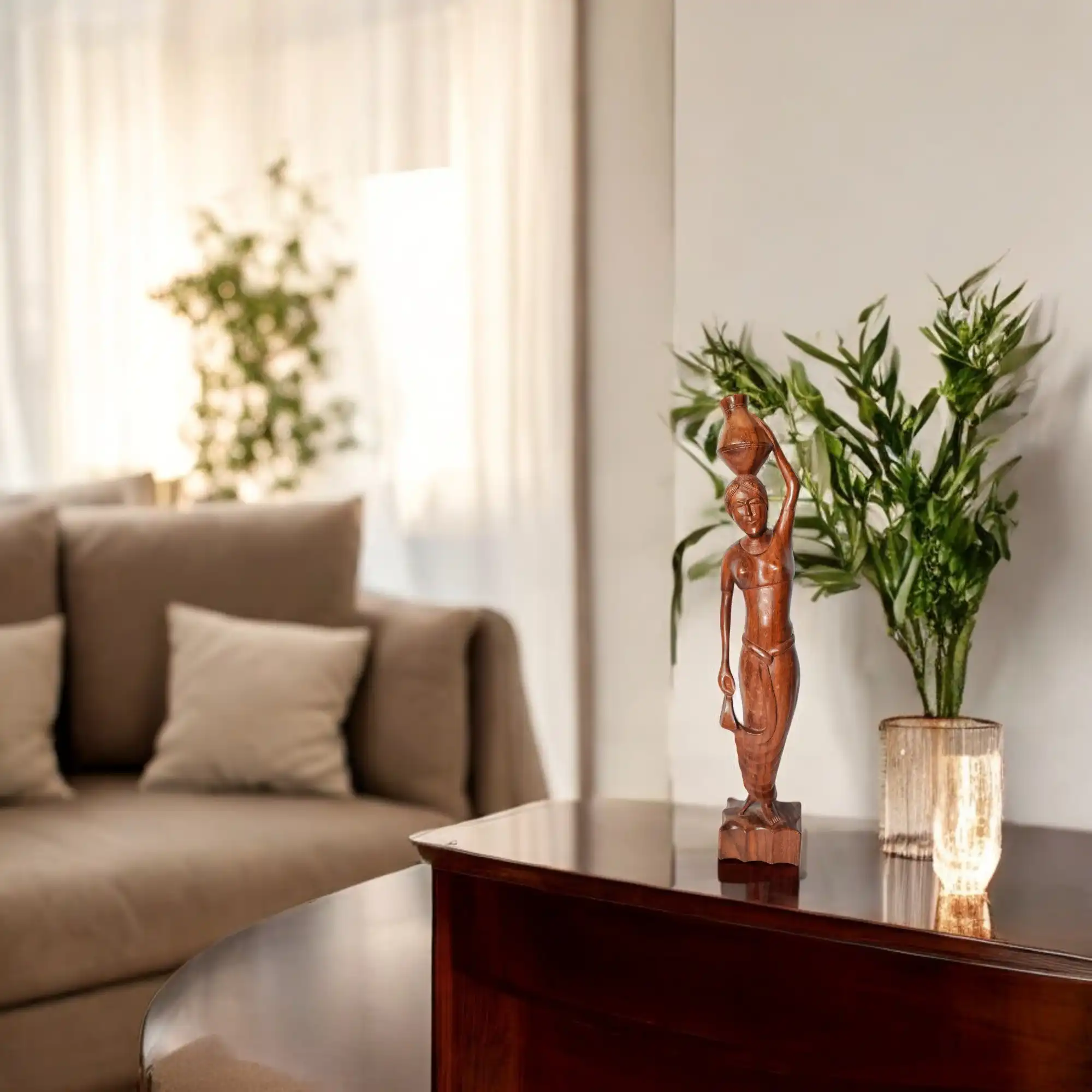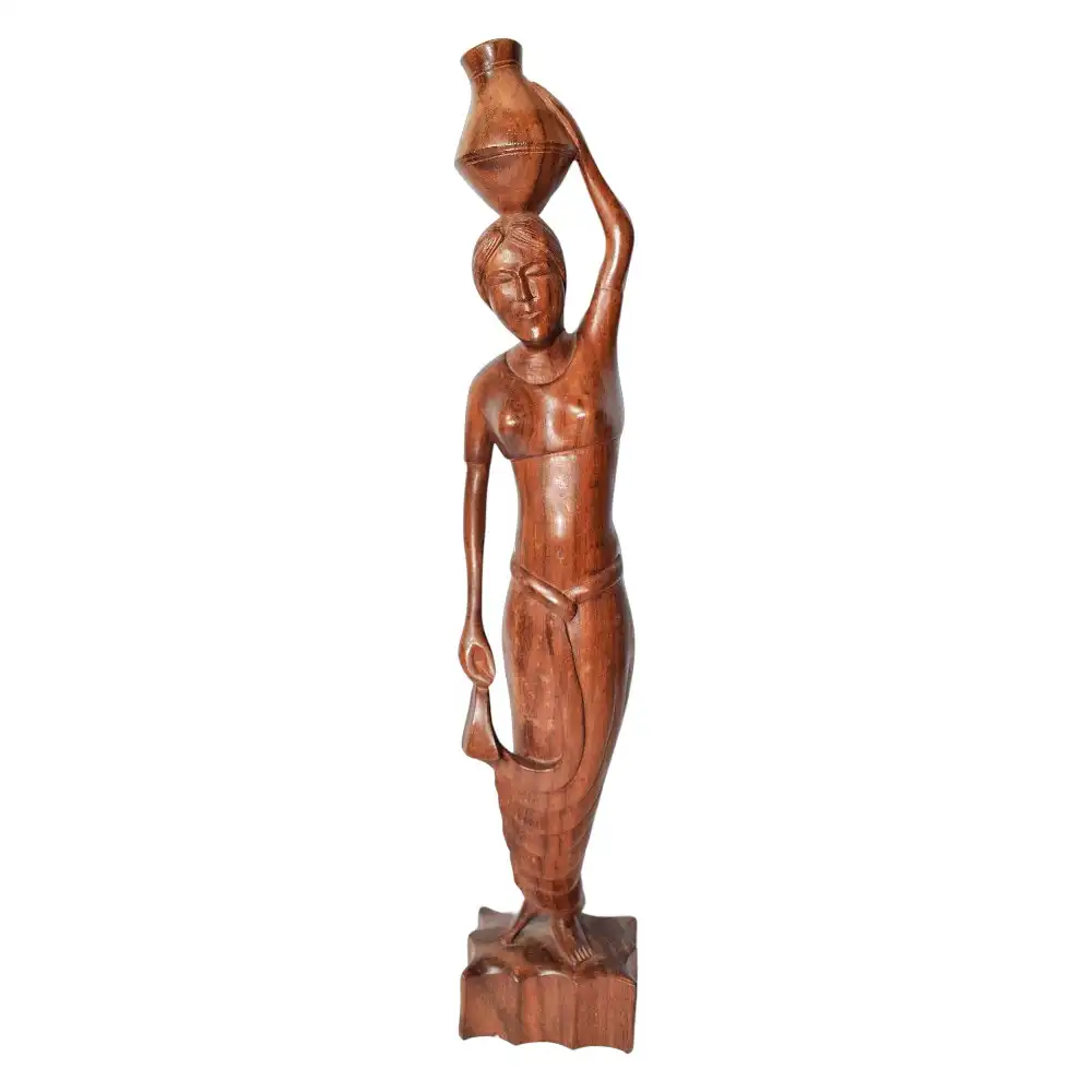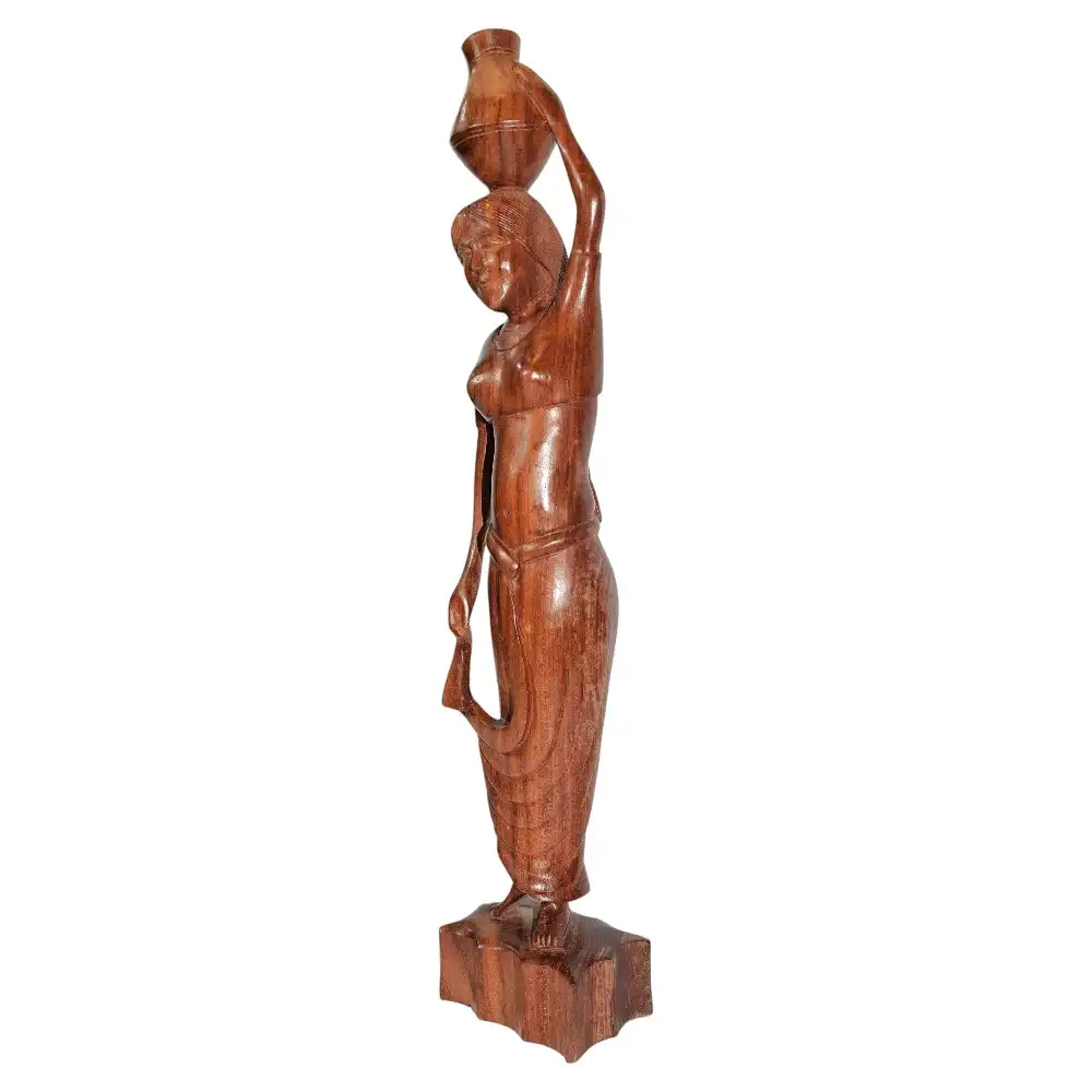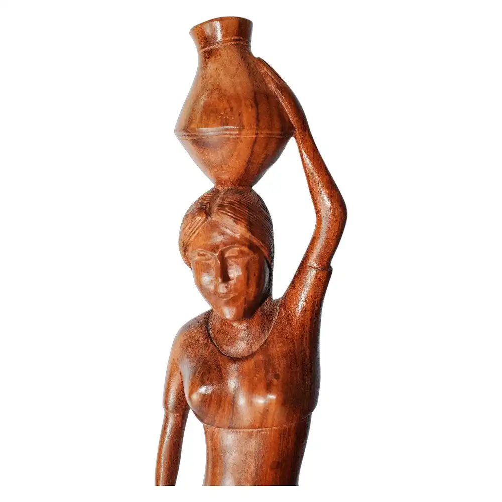 Hand-Carved wooden decoration piece Village Woman carrying pitcher