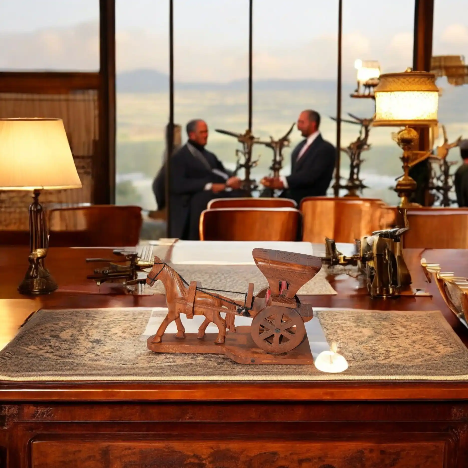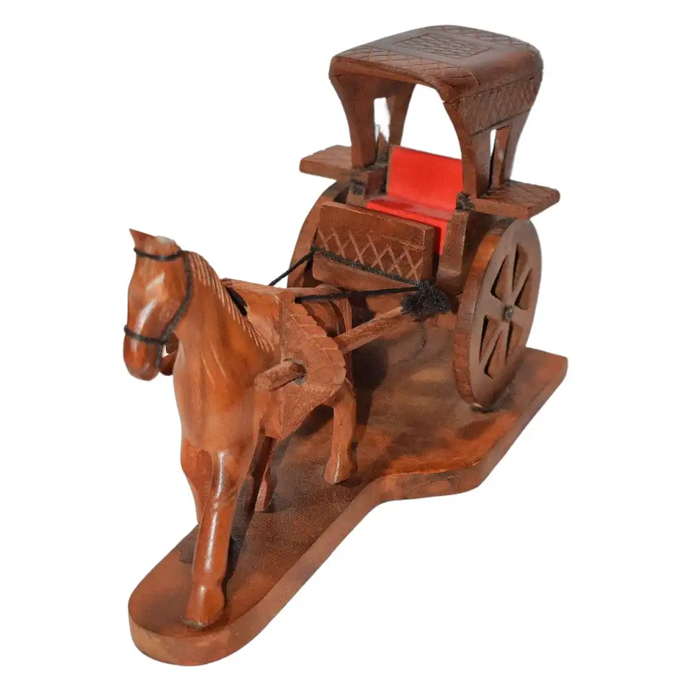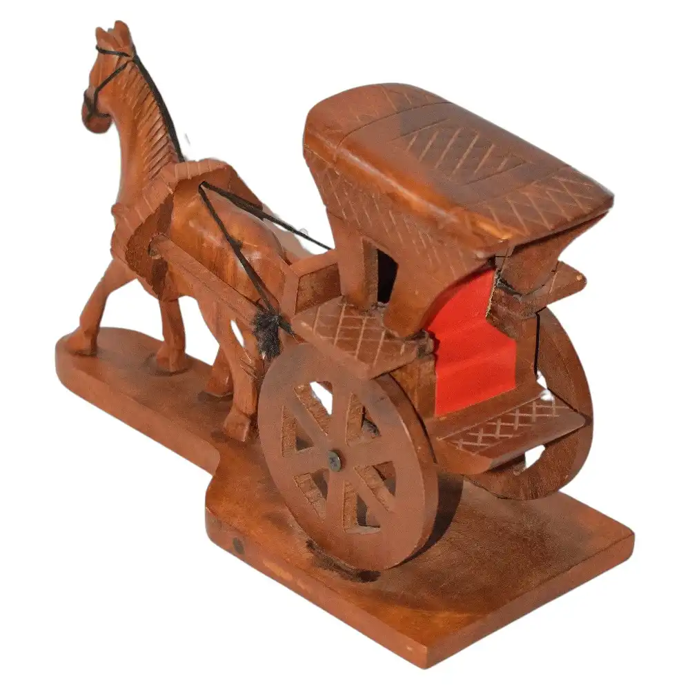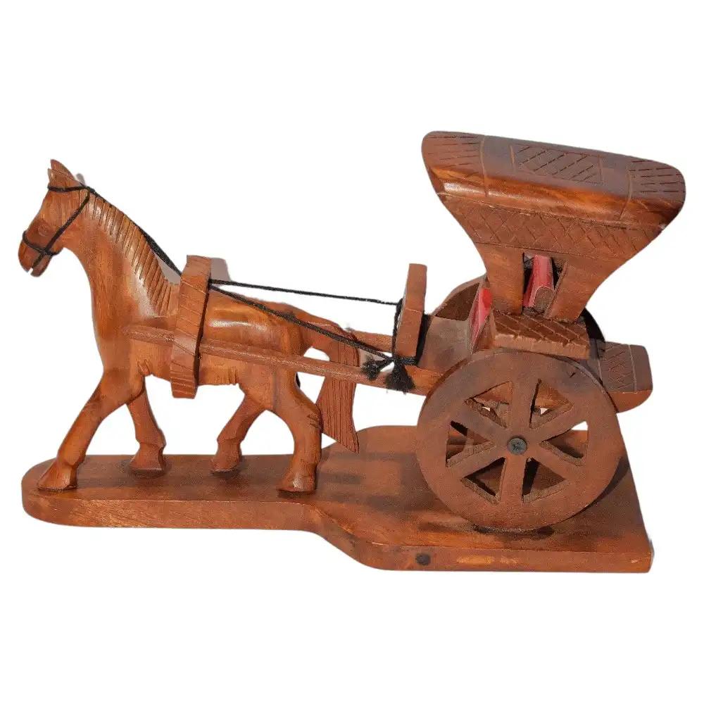 Hand-Carved Wooden Horse Cart Carriage Decoration Piece