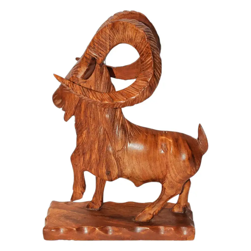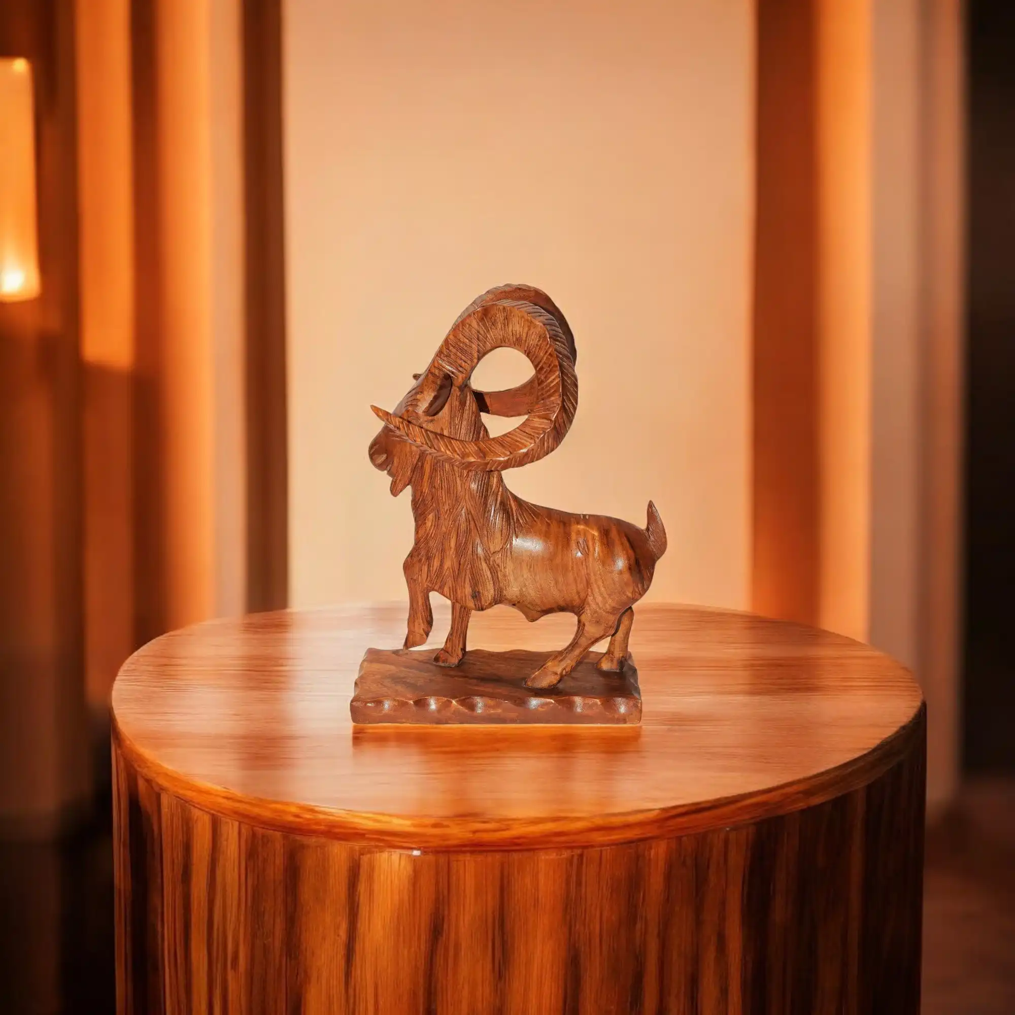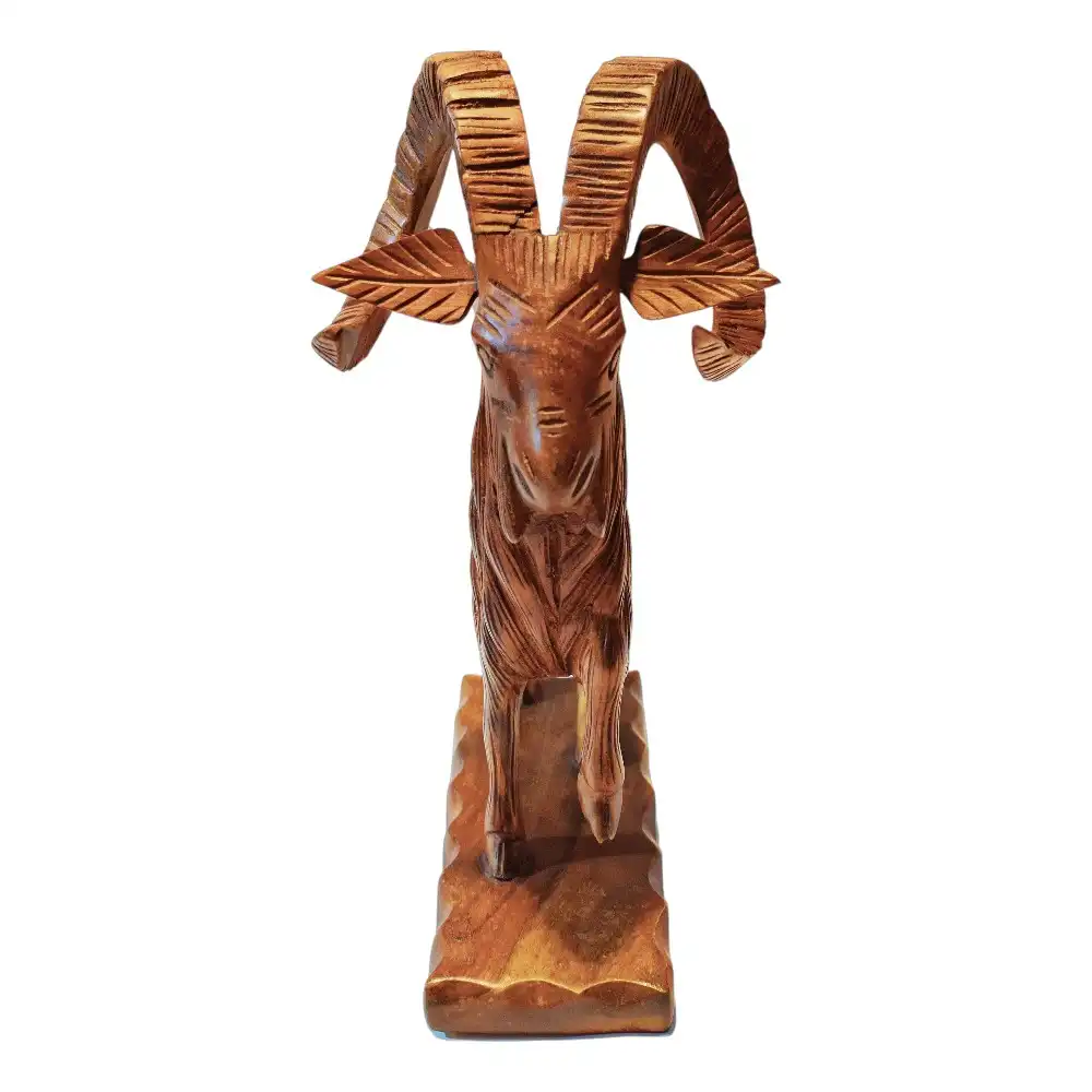 Hand-Carved Wooden Ibex (Mountain Goat) Decoration Piece
