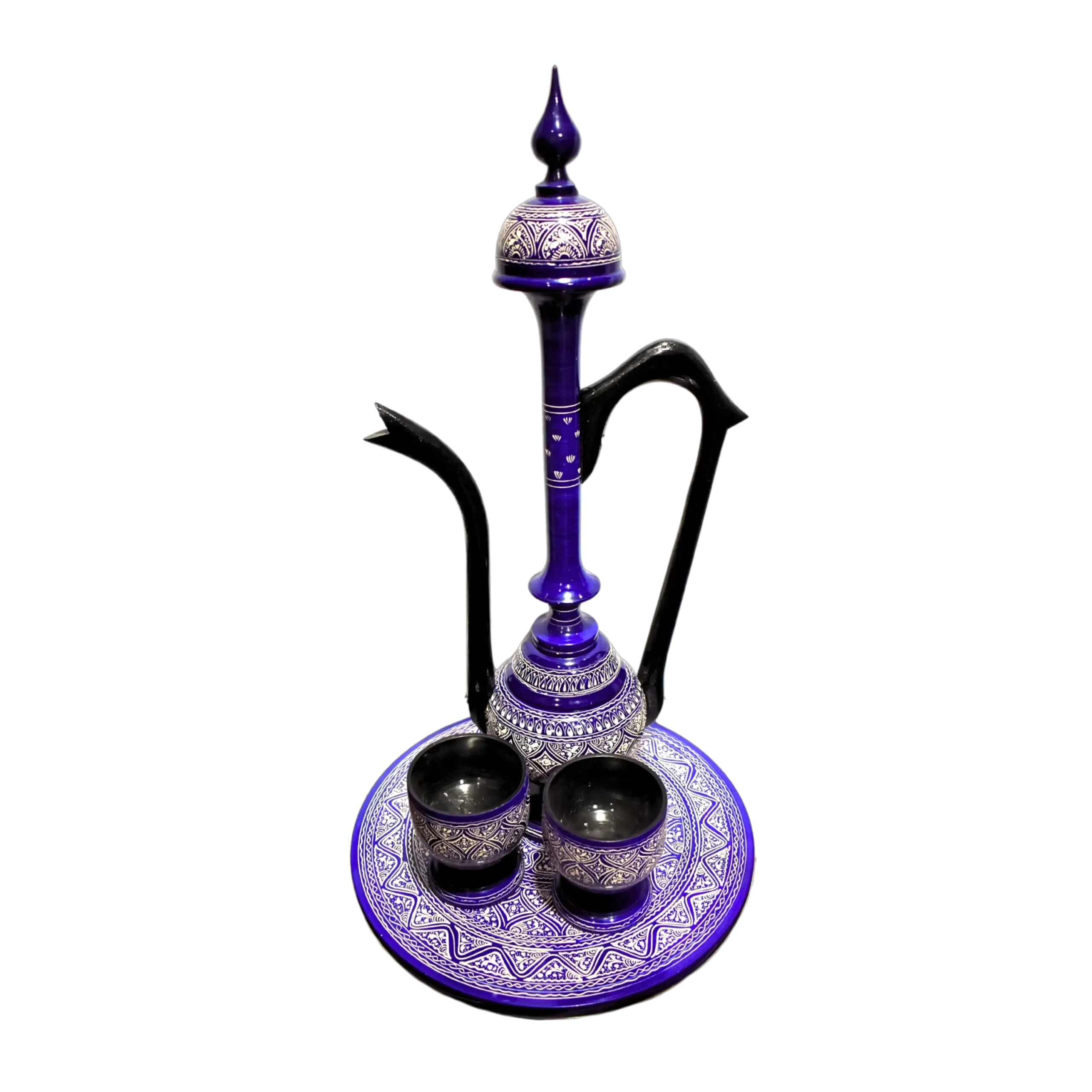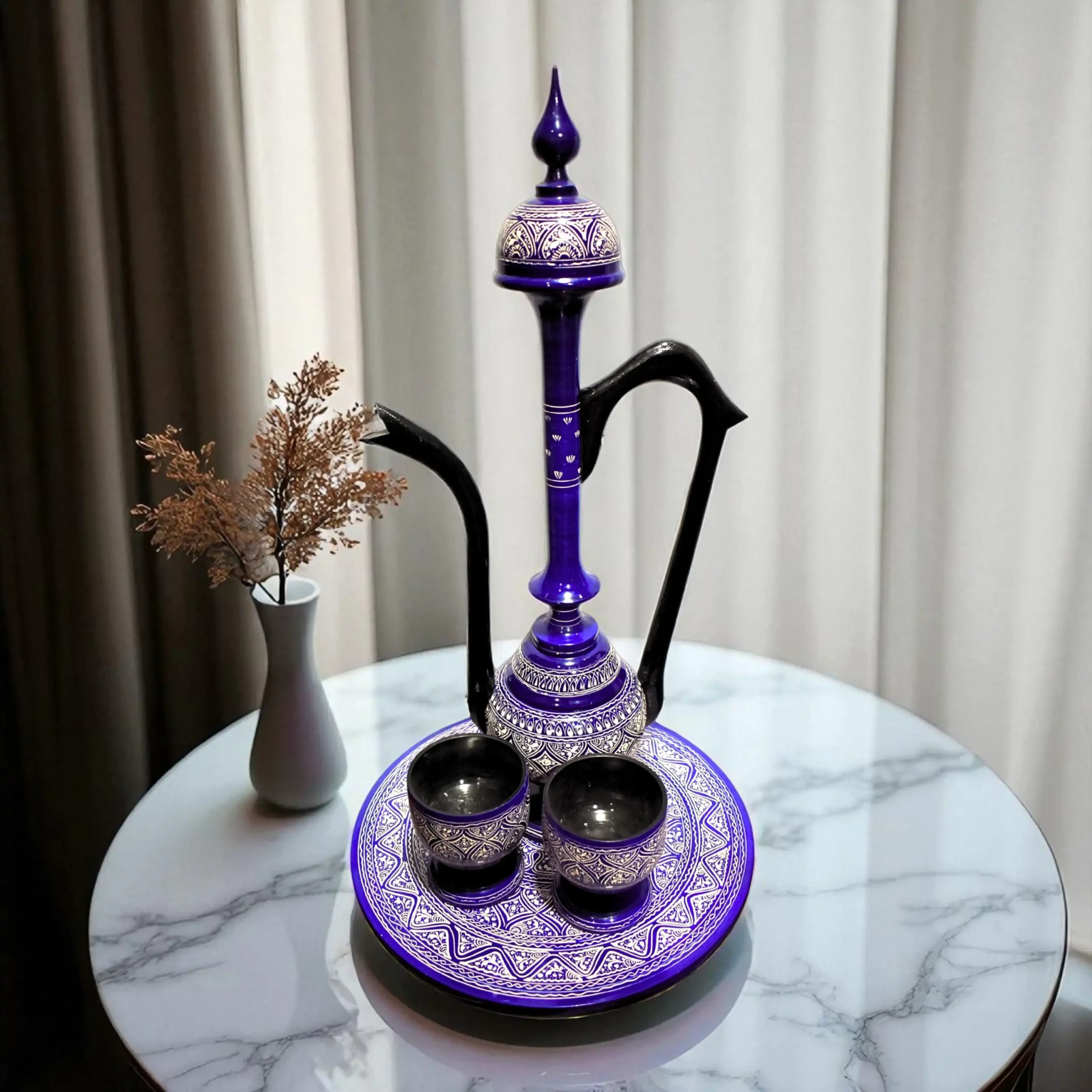 • Fixed decorative ewer with 2 goblets, handcrafted in composite wood/resin