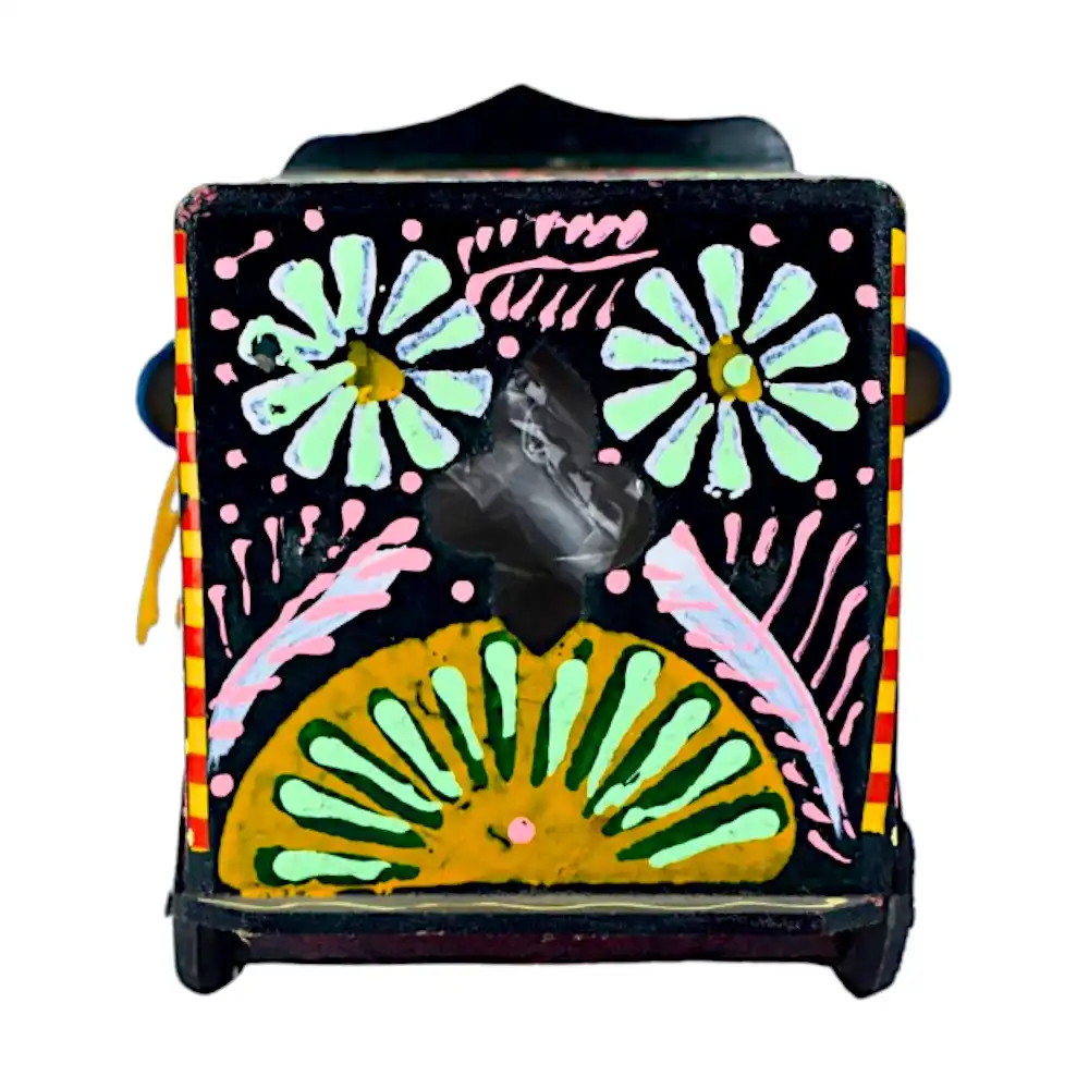 - Decorated with vibrant, hand-painted truck art motifs