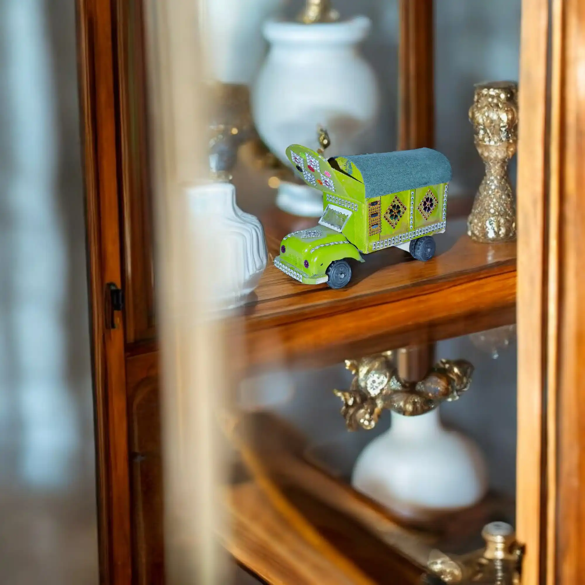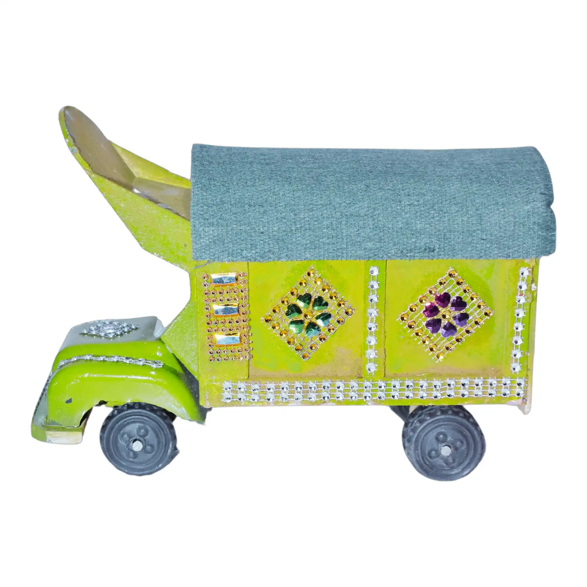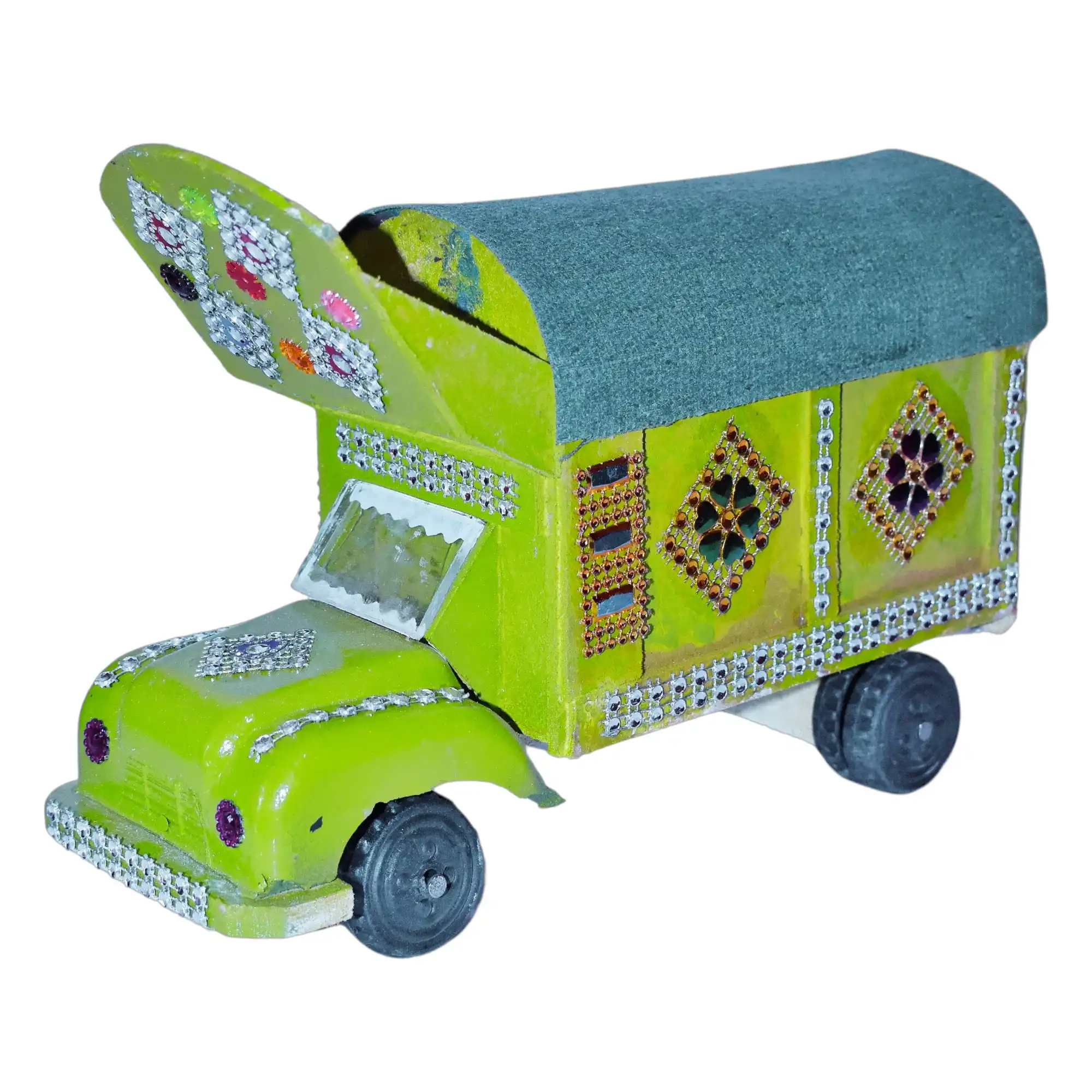 Miniature Traditional Wooden Truck with Mirror Work & Fabric Top