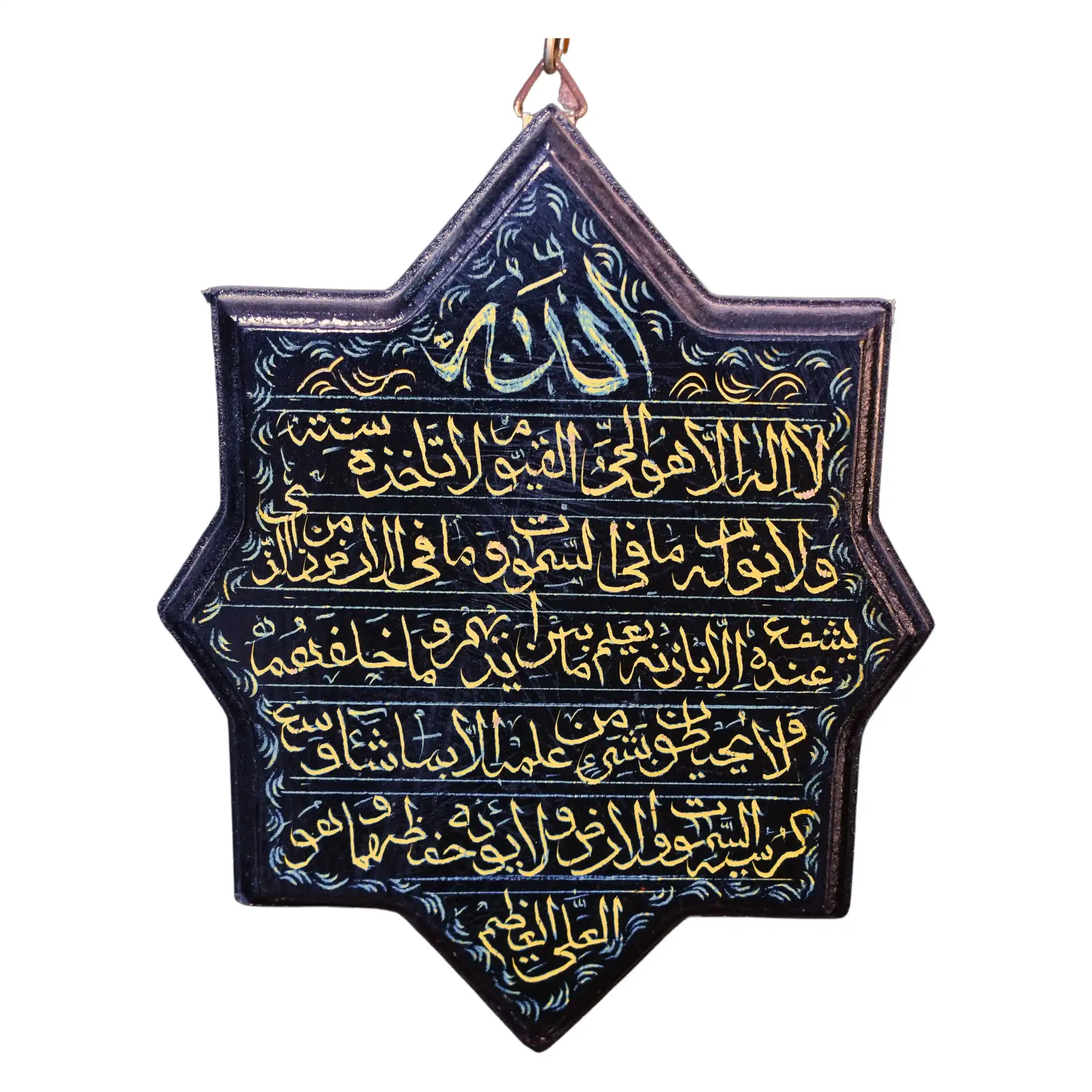 - Hand-engraved Arabic calligraphy of Ayat al-Kursi