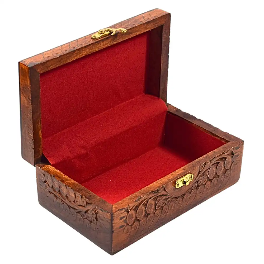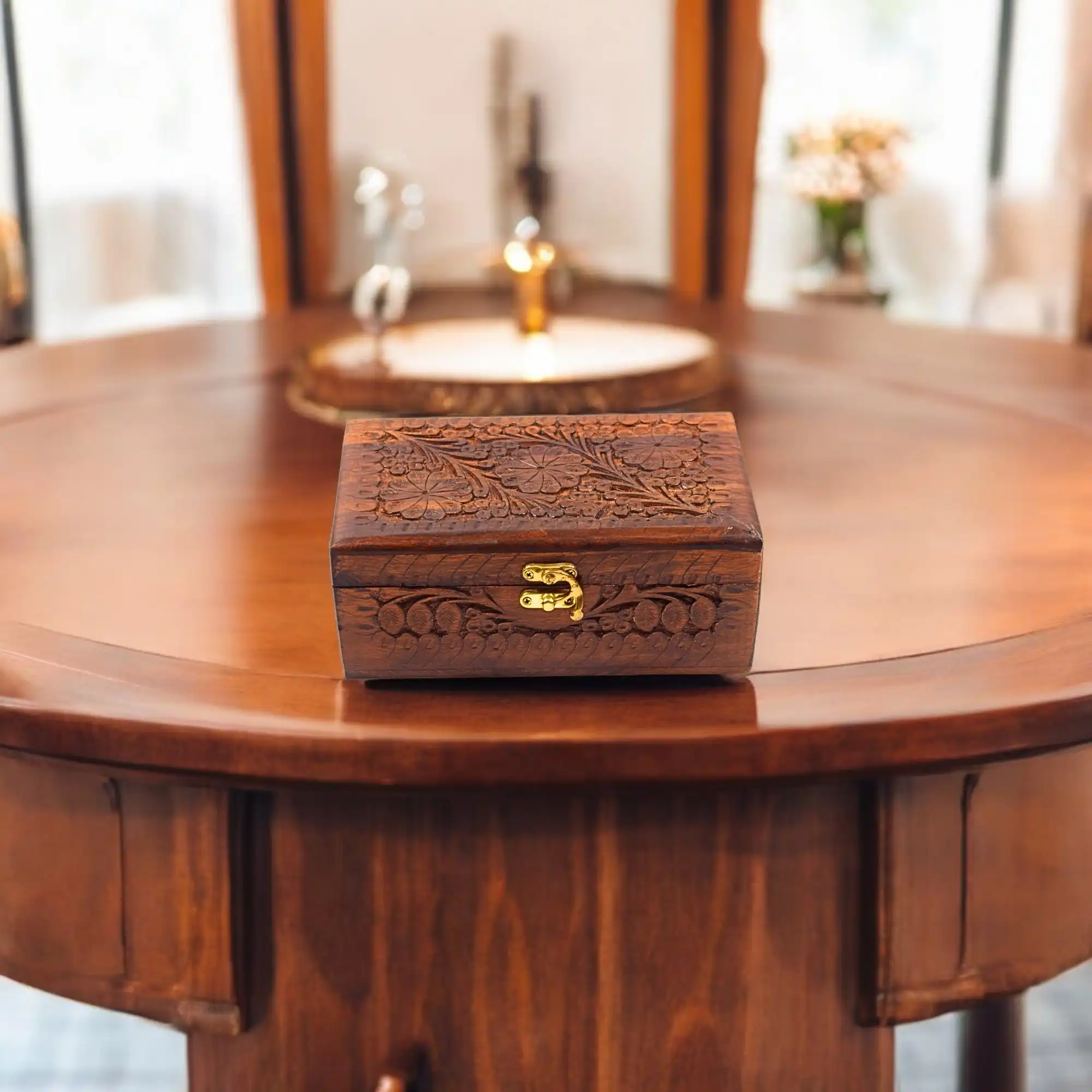 This box is small, but there’s a lot going on. The lid is handcarved with blooming flowers that feel raised to the touch. Inside, the velvet keeps your jewelry in place. You can place a ring, a necklace, or even just a note. It’s a nice thing to keep, or to gift when the gift itself needs a thoughtful presentation. It adds weight—both literally and emotionally—to whatever you put inside.