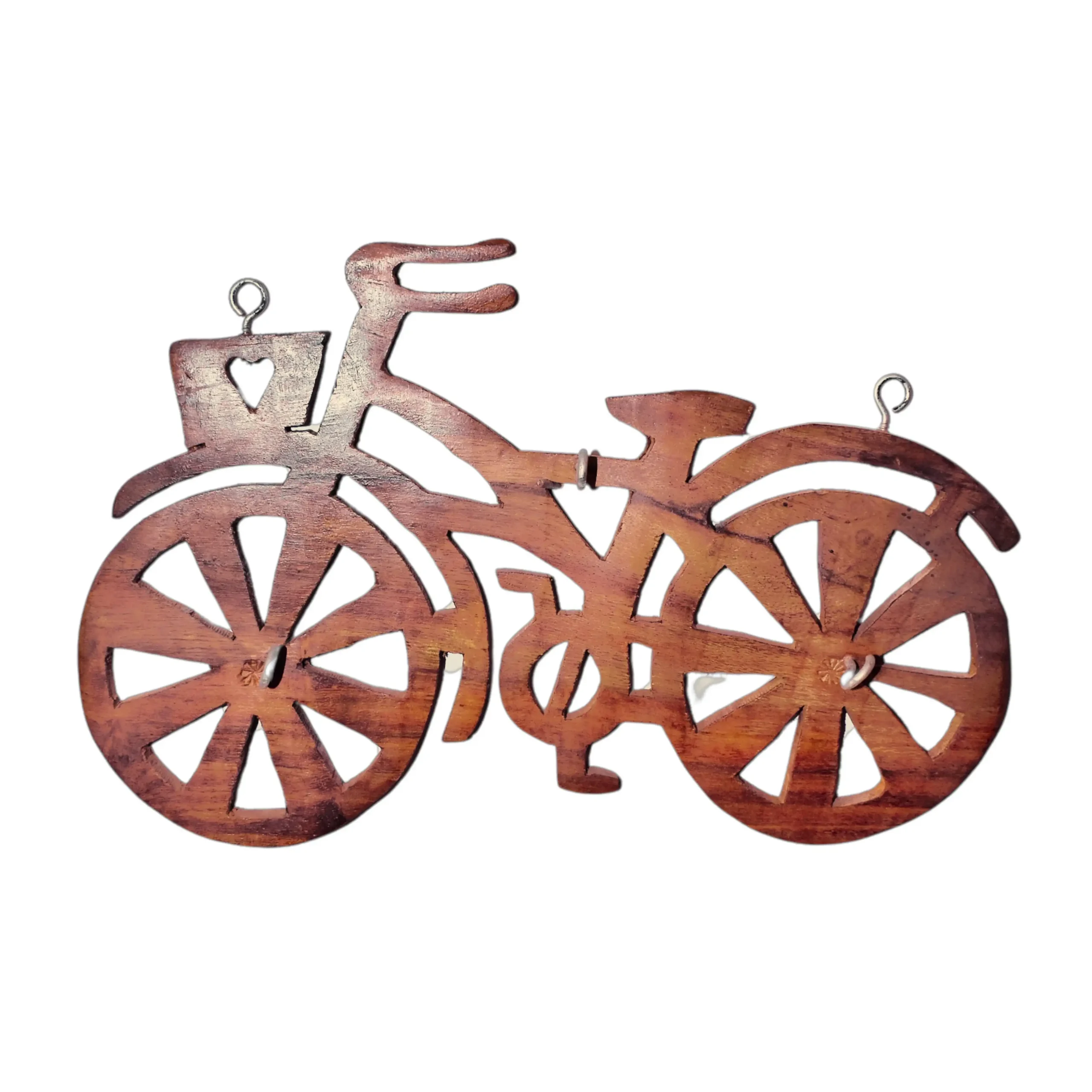 - Hand-carved wooden bicycle-shaped key hanger