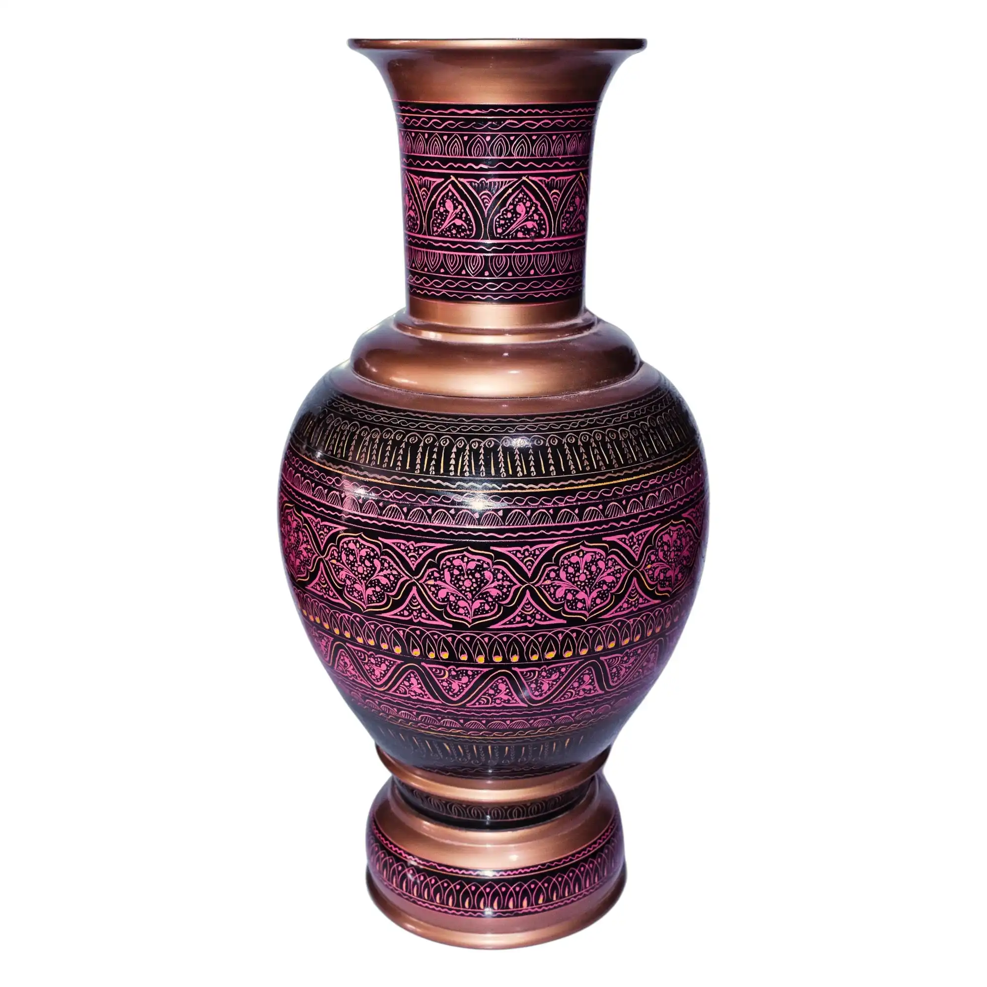 Its luxurious tones of copper and pink make it perfect for modern office lobbies, elegant entryways, or accent corners in living rooms. Pair with bright pink, deep purple, or soft pastel florals to complement the vase’s artwork. Ideal for gifting on housewarmings or festive occasions, this piece is a blend of heritage and elegance designed to enhance both traditional and contemporary spaces.