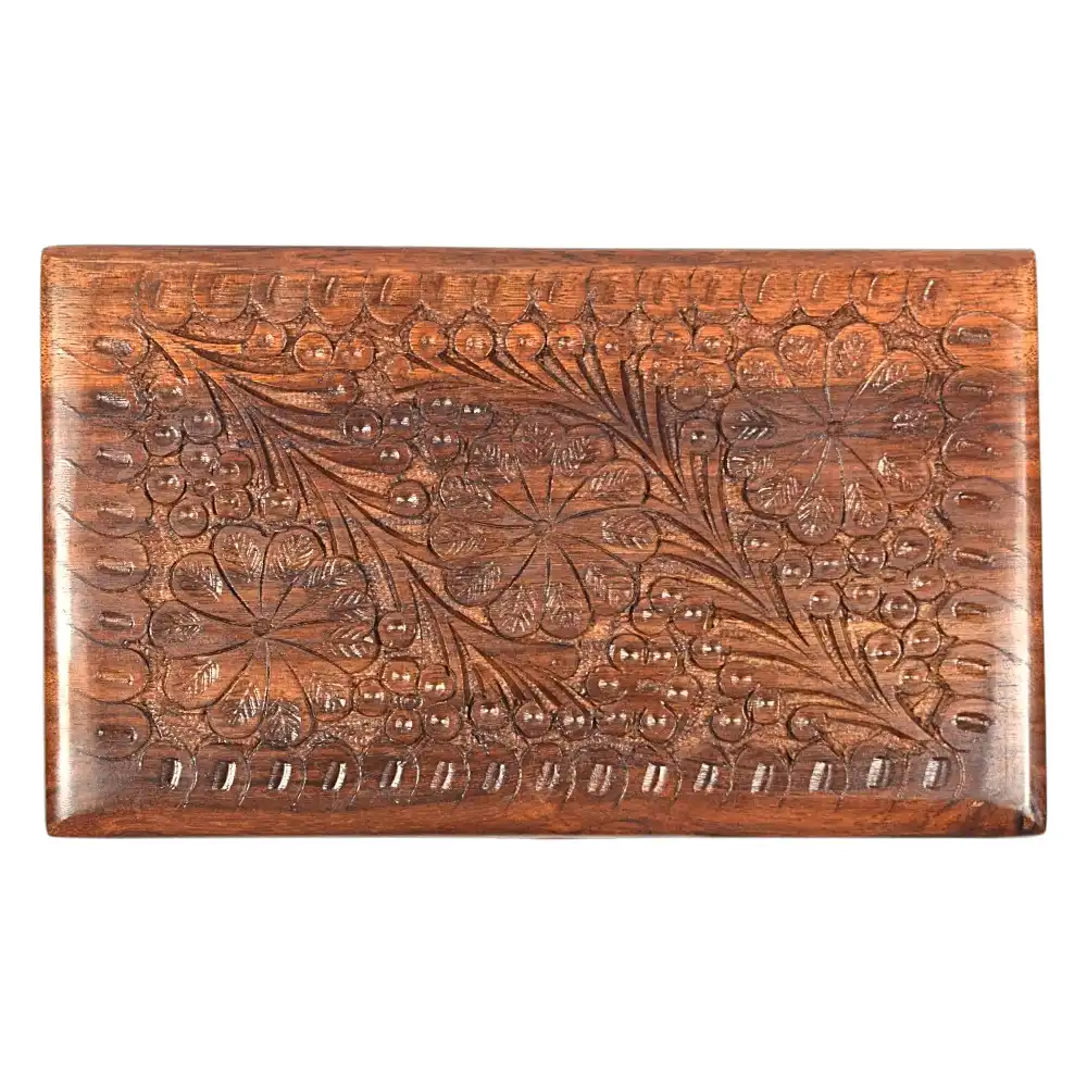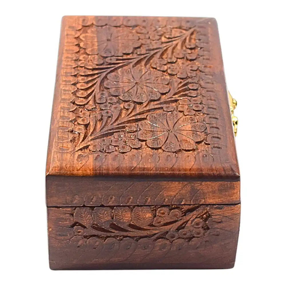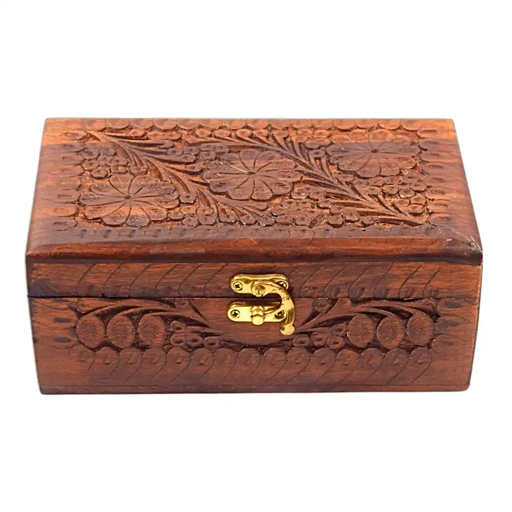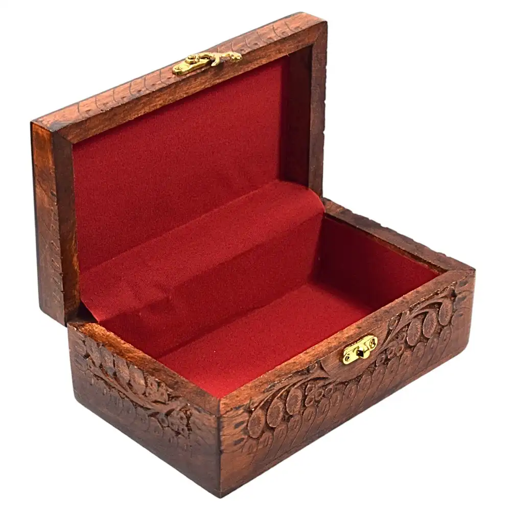 This carved wooden jewelry box is a small luxury in itself. Handcrafted from sheesham wood, it features a deeply detailed floral design that instantly catches the eye. Inside, a rich red velvet lining provides a soft cushion for your most precious rings, earrings, or keepsakes. Whether you’re storing your everyday essentials or gifting someone a necklace or ring, this box enhances the gesture. Its classic wooden grain and warm brown tone also pair beautifully with neutral, warm, or expensive yet traditional interiors. A thoughtful piece to keep for yourself—or to make any gift look ten times more meaningful.