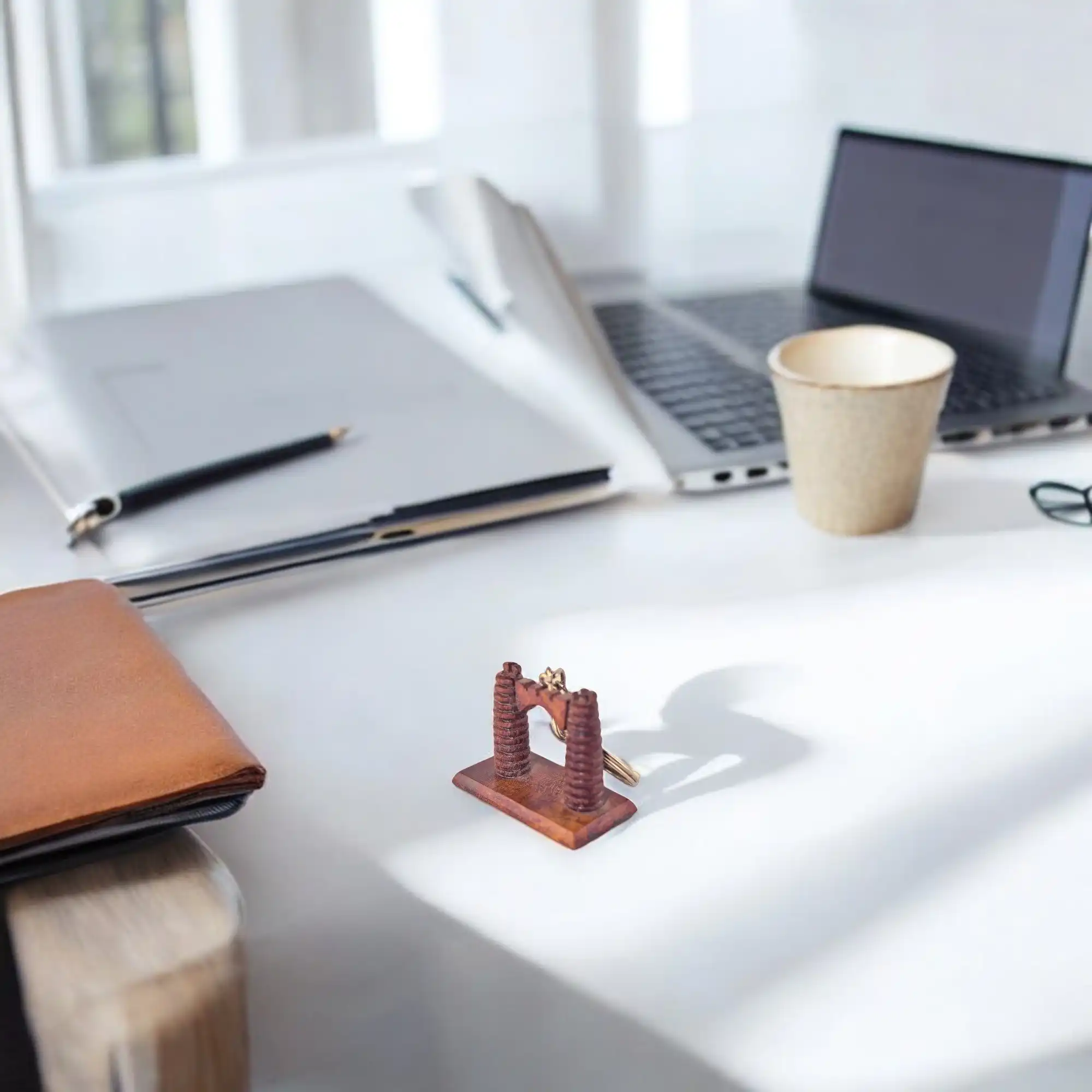 This handcrafted wooden keychain features a miniature of the historic Khyber Pass arch — a subtle nod to one of Pakistan’s most iconic gateways. With each piece shaped from solid wood, the design is simple yet intentional, making it ideal for those who appreciate cultural depth without loud embellishment. The dual-column form echoes the entrance to a region of stories and trade, rendered here in a compact 2.5×1.5×2 inch format. Its durable metal loop holds your keys securely, while the wood body adds a warm, tactile quality that stands out in your hand or pocket. Whether carried daily or gifted as a keepsake, it blends utility with meaning in one quietly confident form.