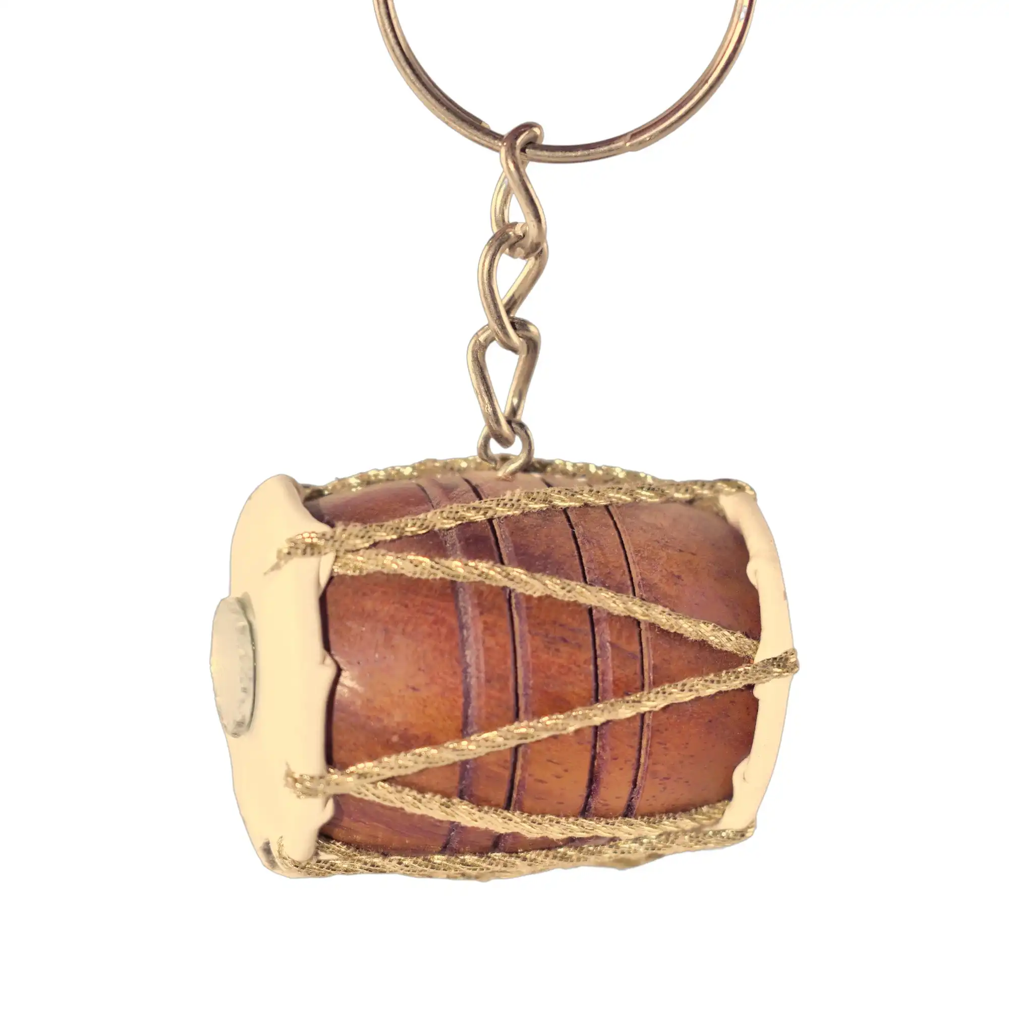 Celebrate rhythm and culture with this beautifully handcrafted wooden keychain shaped like a traditional “Dhol” drum. Measuring just 2 inches long and 1.5 inches in height, this mini dhol features finely polished wood, complete with golden string accents that mimic real drum tension lines. Its charming cylindrical form, authentic detailing, and compact size make it a unique addition to your key collection or a thoughtful cultural gift. Carry a piece of heritage with you wherever you go!