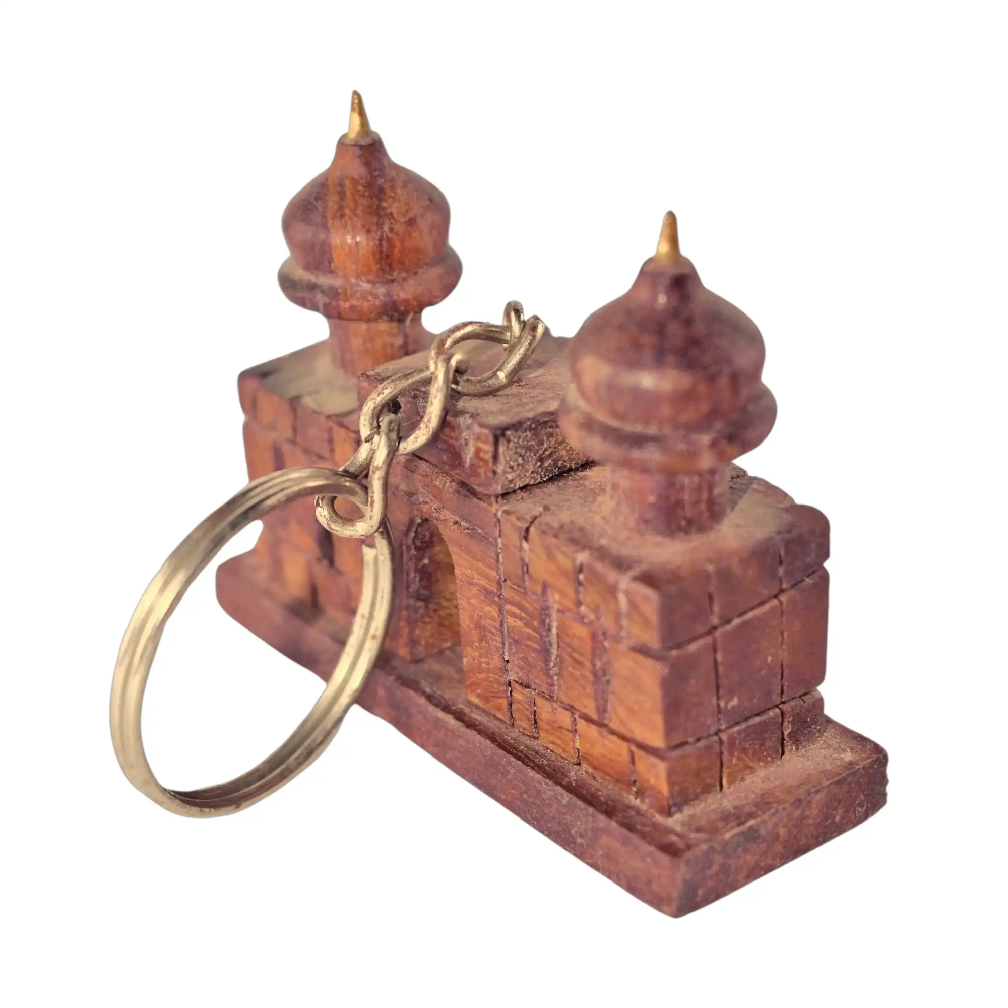 This keychain is a scaled tribute to Lahore’s Shahi Qila, hand-carved from natural wood. The domes, the arched gate, and the rough-hewn brickwork are all captured in miniature. With dimensions of approximately 3″ × 1″ × 2″, it’s compact enough for a key pocket, yet it brings architectural memory wherever it goes. The metal ring and chain are made to last. It’s not a souvenir that screams; it stays quiet in your hand—just history, held together with brass.