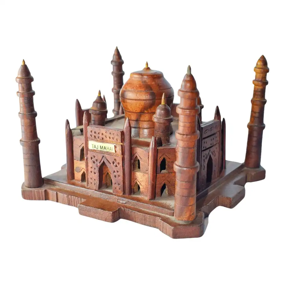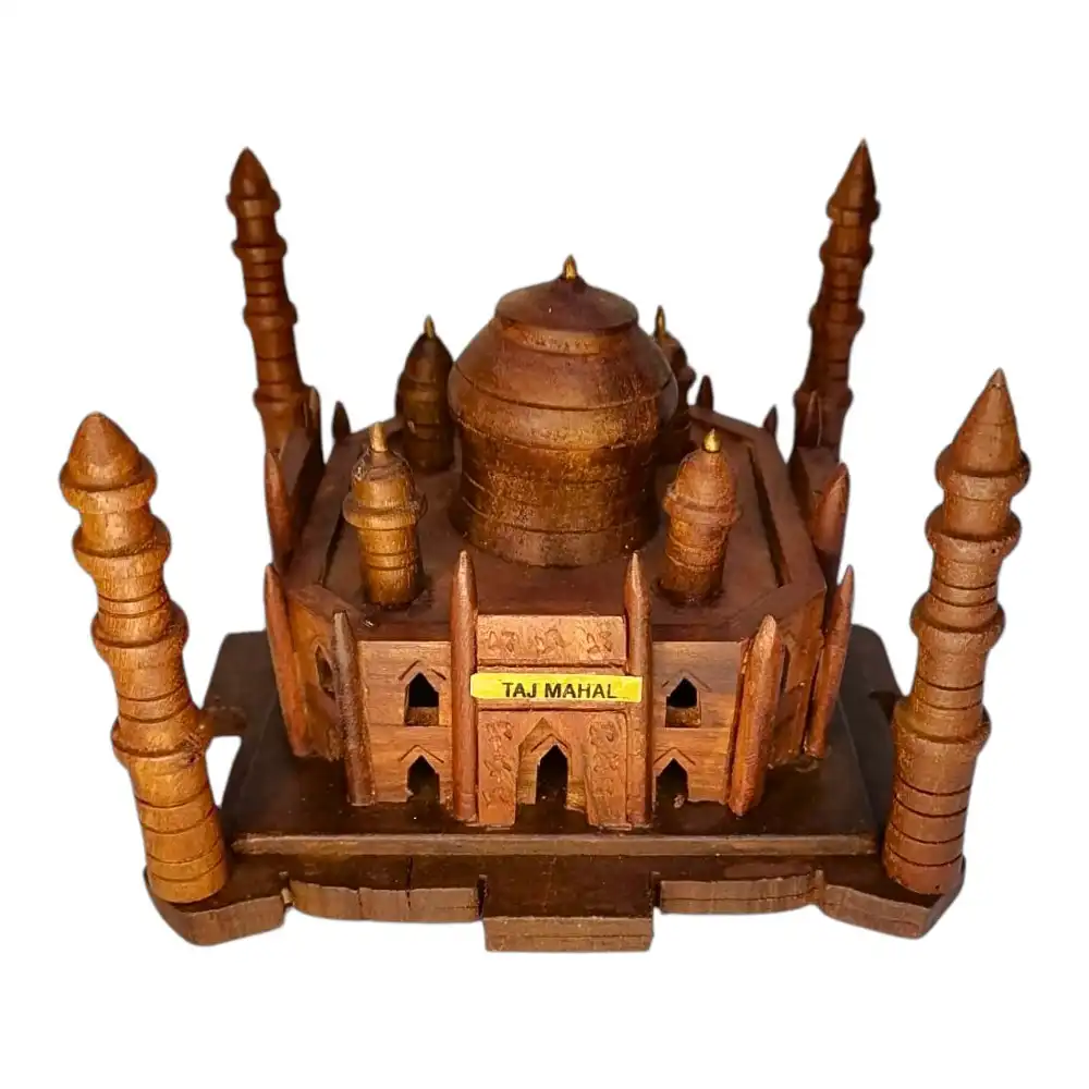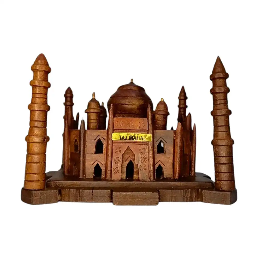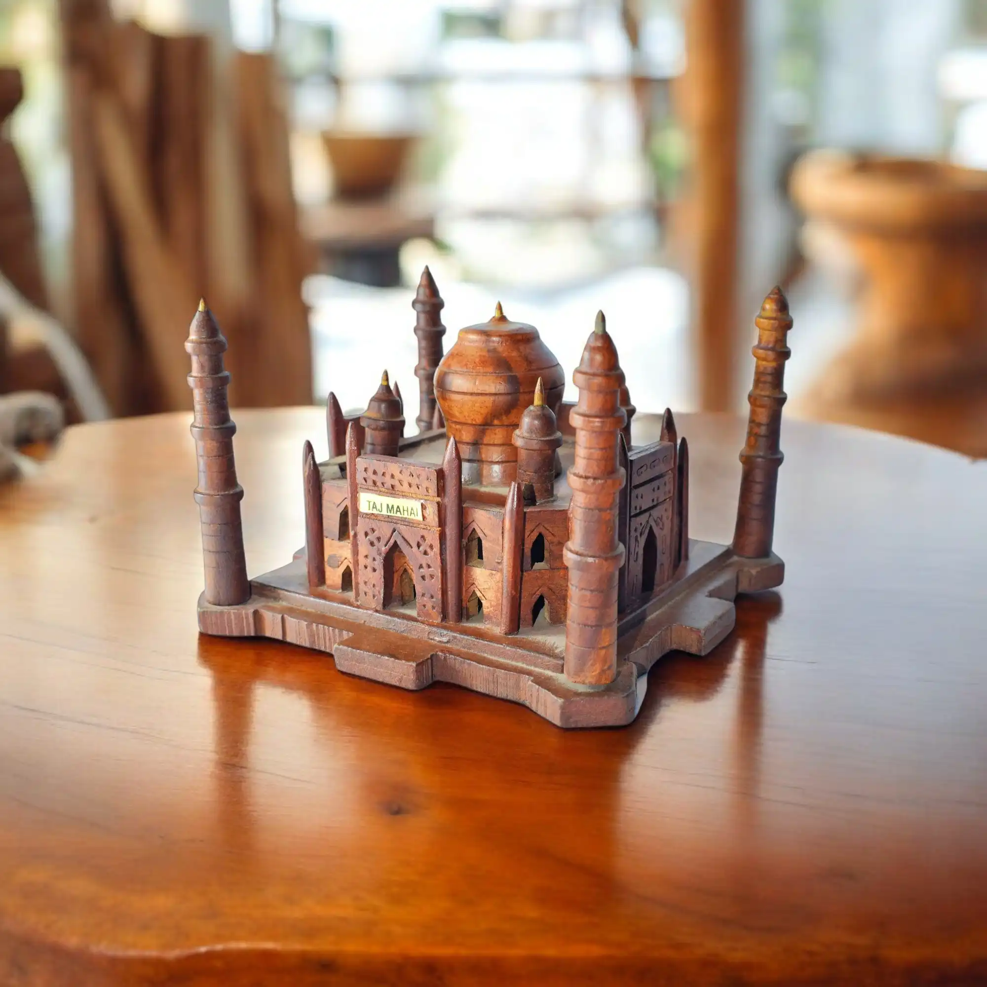 The wooden Taj Mahal decoration piece speaks without sound. Its dome holds still like a full moon. The minarets watch over, tall and quiet. Every arch, every turn—simple. The kind of piece that doesn’t ask for attention but earns it slowly. It fits wherever there’s calm. On a desk. In a study. By the shelf. And just like the real thing—it stays.