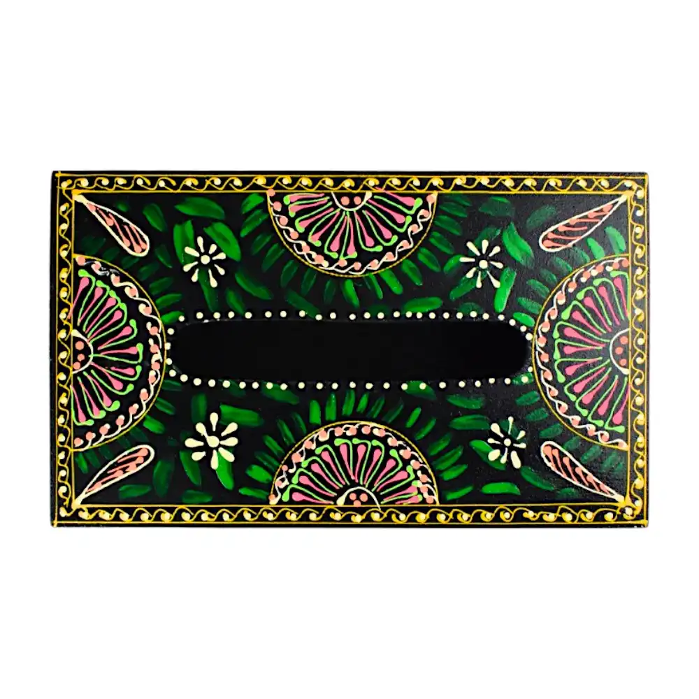 This wooden tissue box is all colour, all attitude—just like the trucks it’s inspired by. The floral truck art motifs are hand-painted, not printed, with every line made to feel alive. It holds a regular tissue pack and opens easily from the base. You can place it in a sitting room, guest area, or even a cafe—anywhere you want to bring a little character to the space.