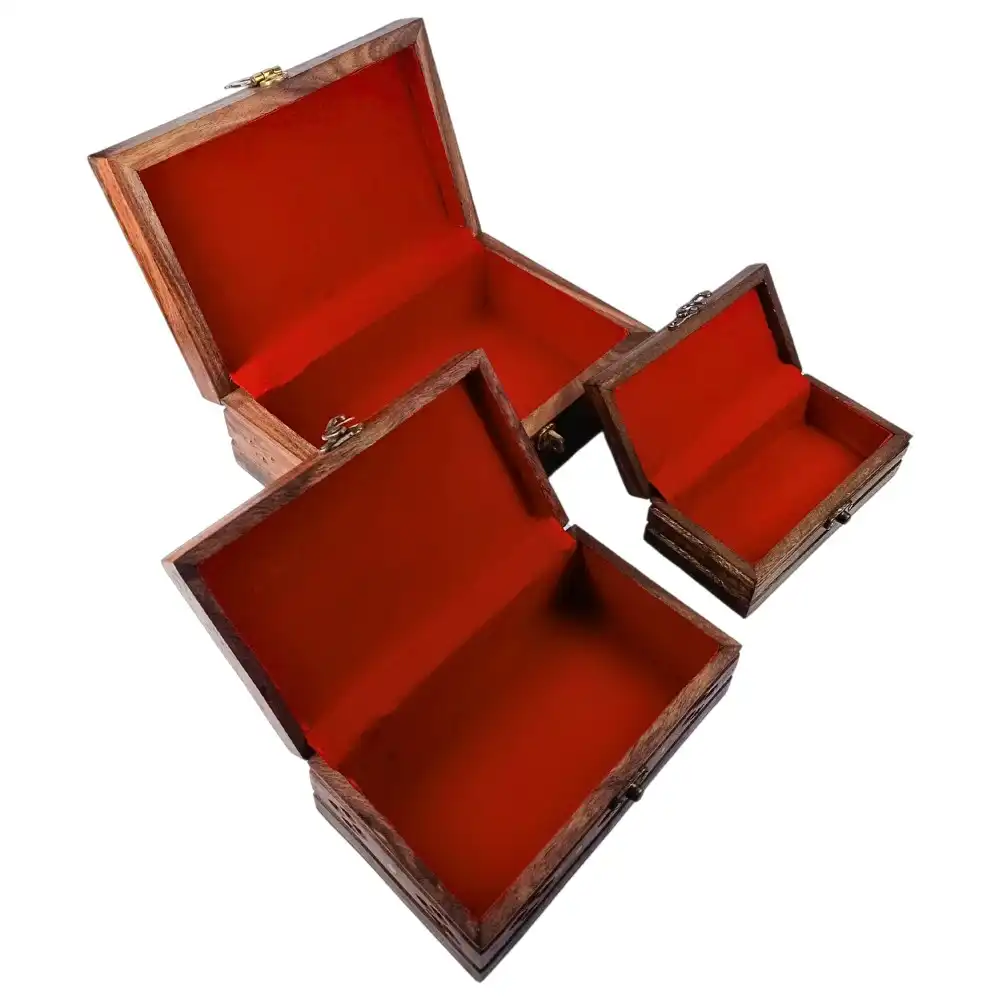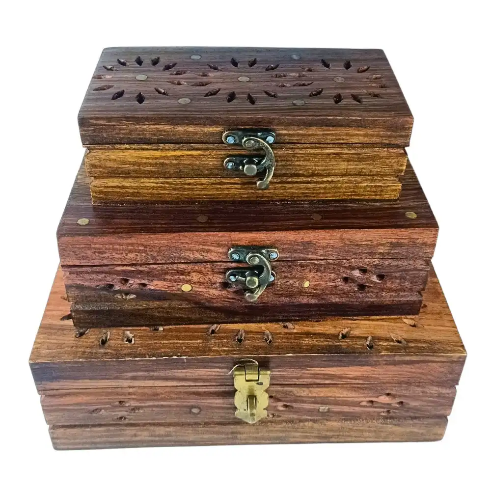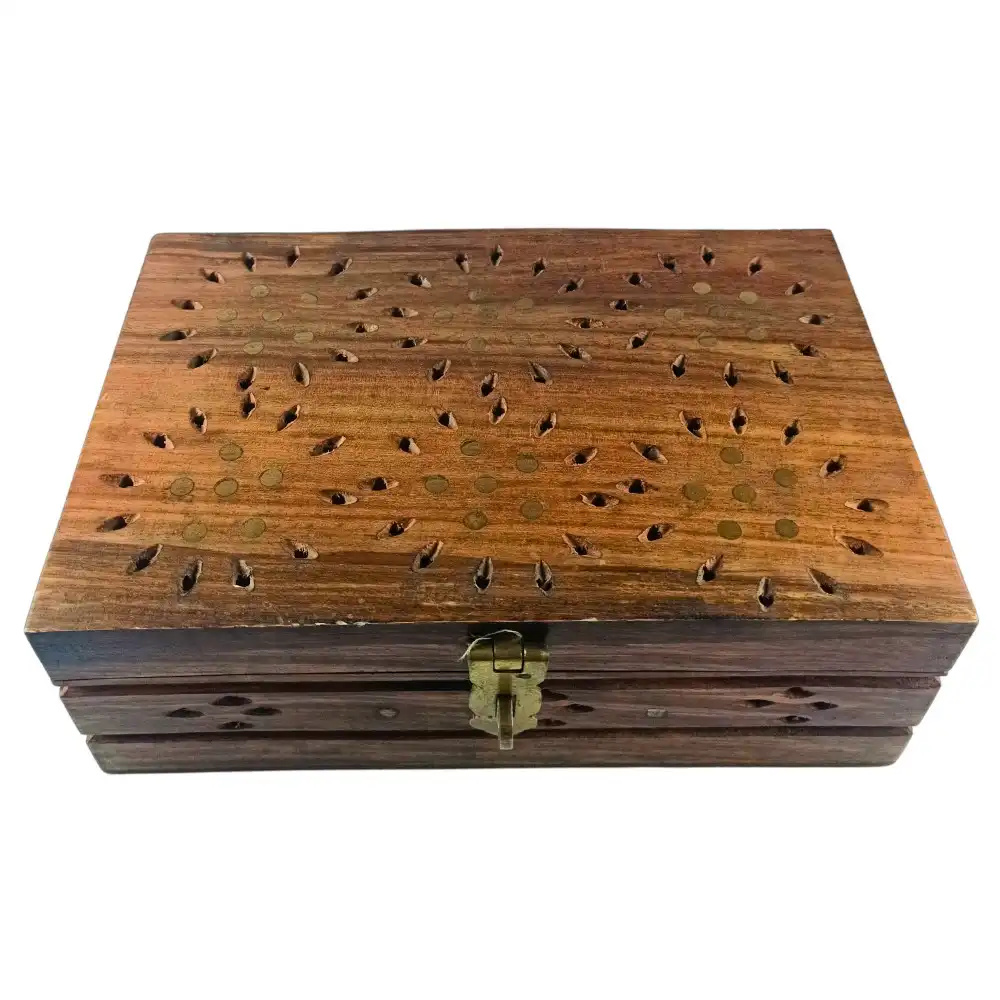 Some things are too meaningful for velvet. This box is for the pieces you inherited, not bought — the brooch that belonged to your dadi, the chain from your mother’s rukhsati, the letter you wrote and never sent. The hand-drilled floral inlay on this rosewood jewelry box whispers stories of good old times, and the raw wooden interior feels like a page waiting to be filled. It doesn’t promise luxury; it promises legacy.